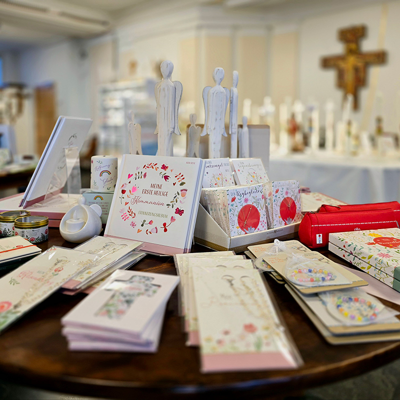 Herzliche Einladung zur diesjährigen Kommunionausstellung im Klosterladen der Franziskanerinnen in Gengenbach! Unter dem inspirierenden Motto „Ihr seid meine Freunde“ erwartet Sie eine liebevoll gestaltete Auswahl rund um das Fest der Erstkommunion: